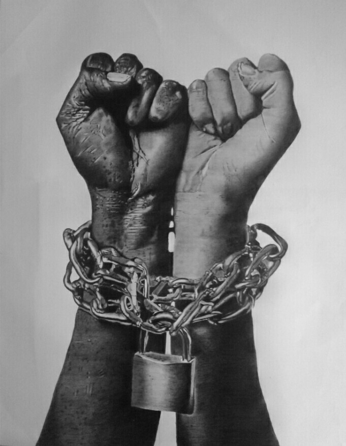 This work “ENSLAVED” is one of my favorite works that I did out of love for the people in the society who need social justice against structural violence, brutality, etc. to those out there who need freedom, who need their voice to be heard, but are scared to voice out because they were threatened in one way or the other. We believe the society speaks and we listen and the best way to reply to them or to give them my voice is through my art
