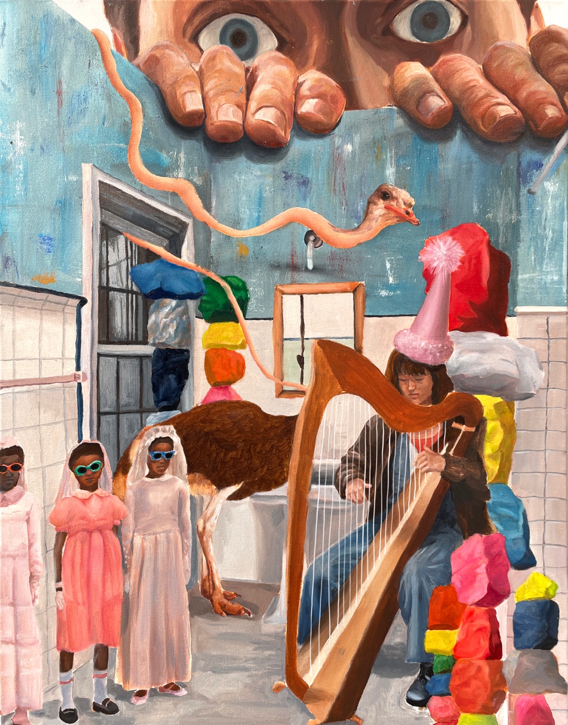 Bodily autonomy includes the right to seek refuge and asylum from conditions that are physically, economically, or otherwise insecure or unsafe. When these rights are intruded upon, one may feel at a constant state of fear or instability, being at an edge even in place of stability. This artwork explores the idea of bodily autonomy—specifically the right to take refugee in a safe space—through a sense of paranoia intruding upon a safe space of peace and harmony.